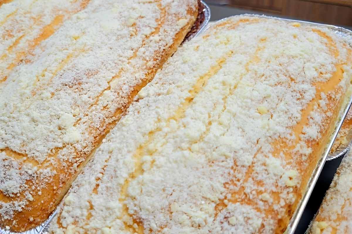 Aprendi uma receita de padaria de cuca recheada que ficou uma maravilha