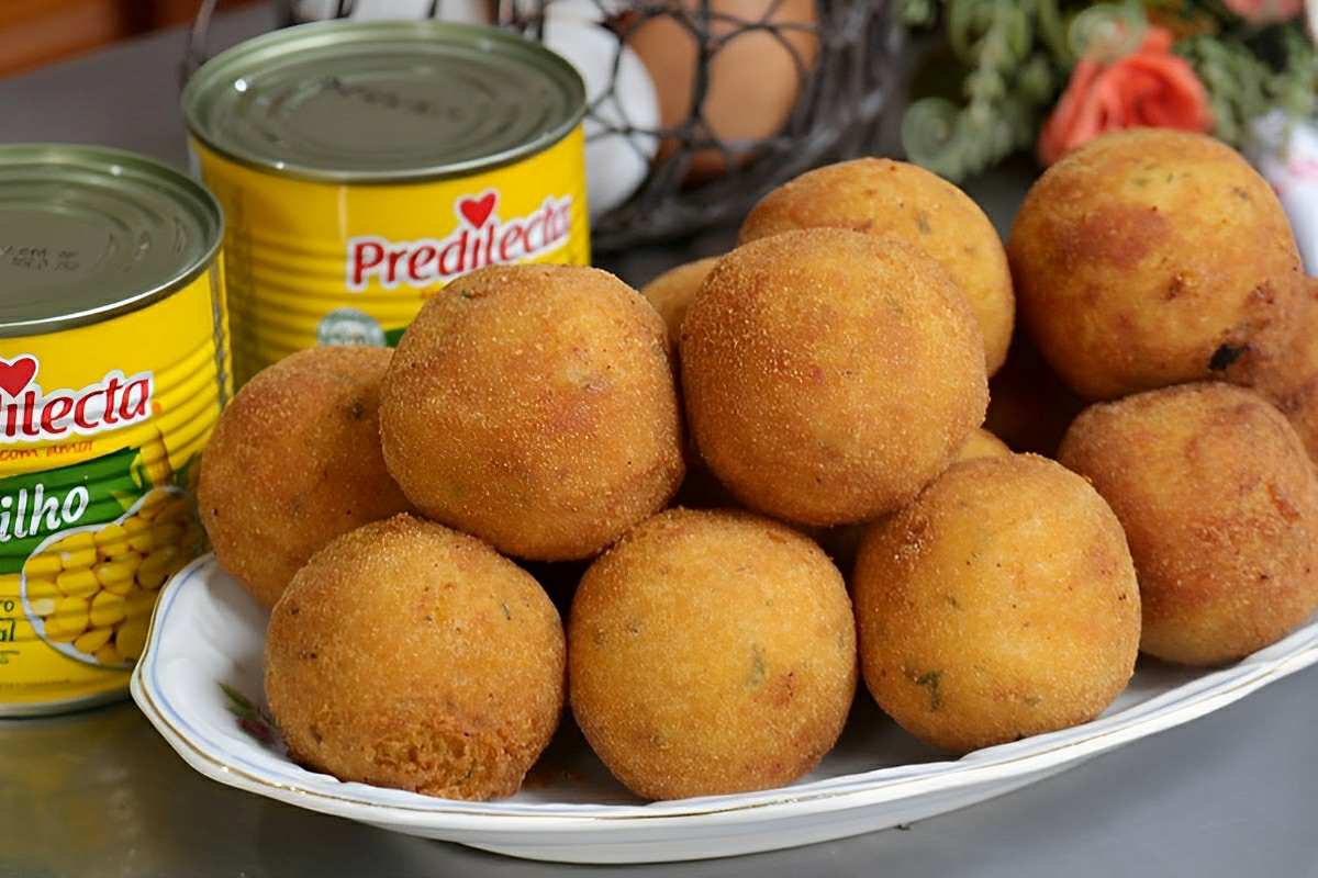 Bolinho de milho frito recheado com queijo perfeito para o lanche