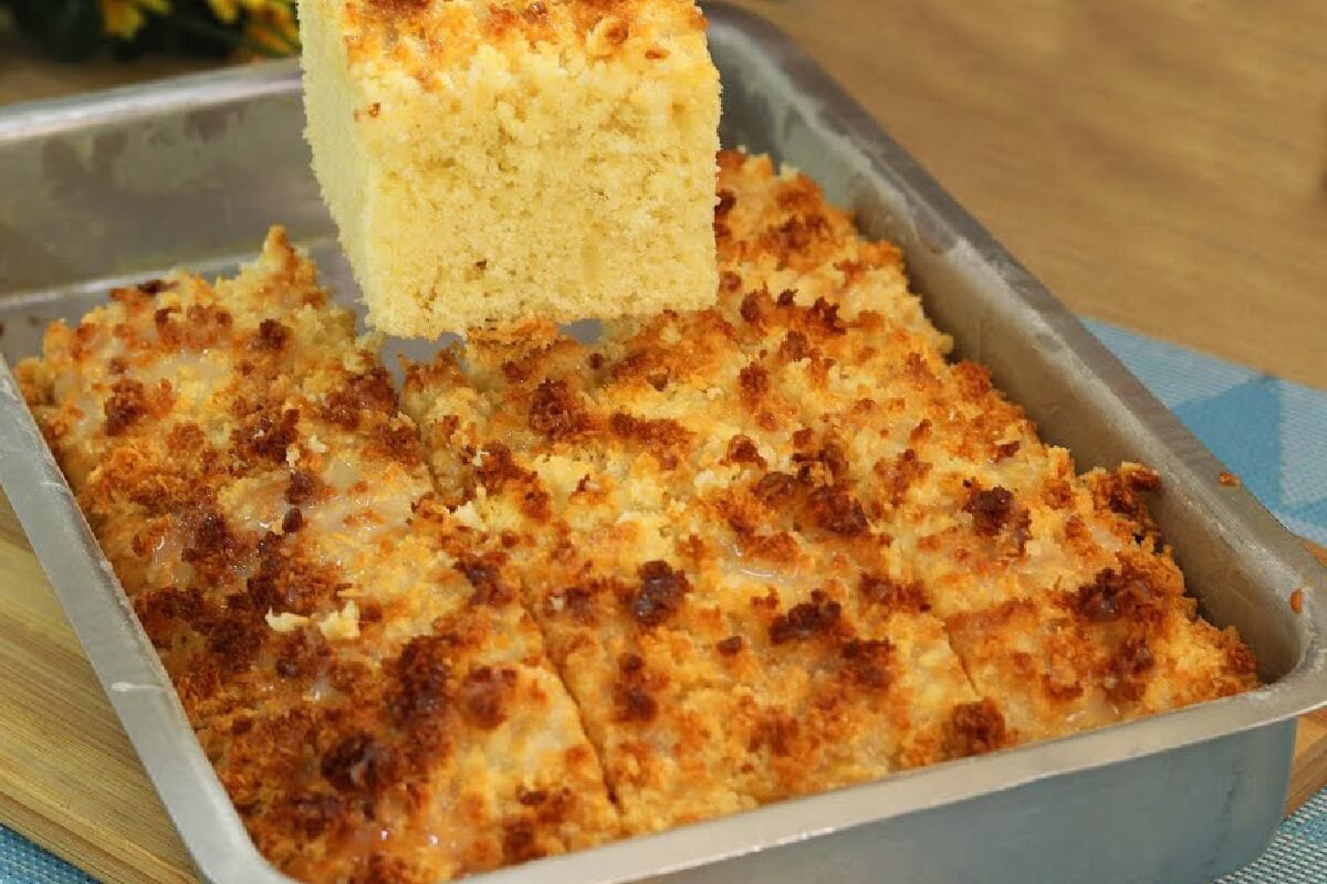 Bolo cocada uma massa super macia e que já sai do forno com a cobertura feita
