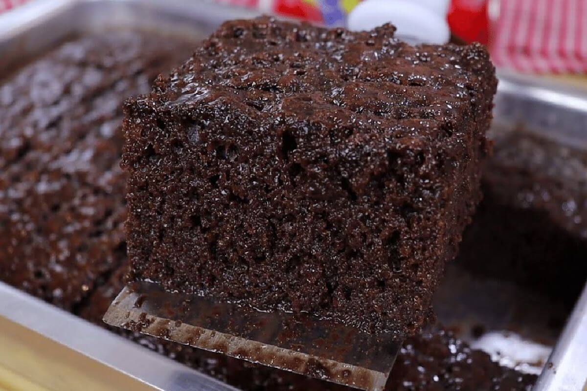 Bolo de chocolate molhadinho e macio com a receita mais fácil de todas