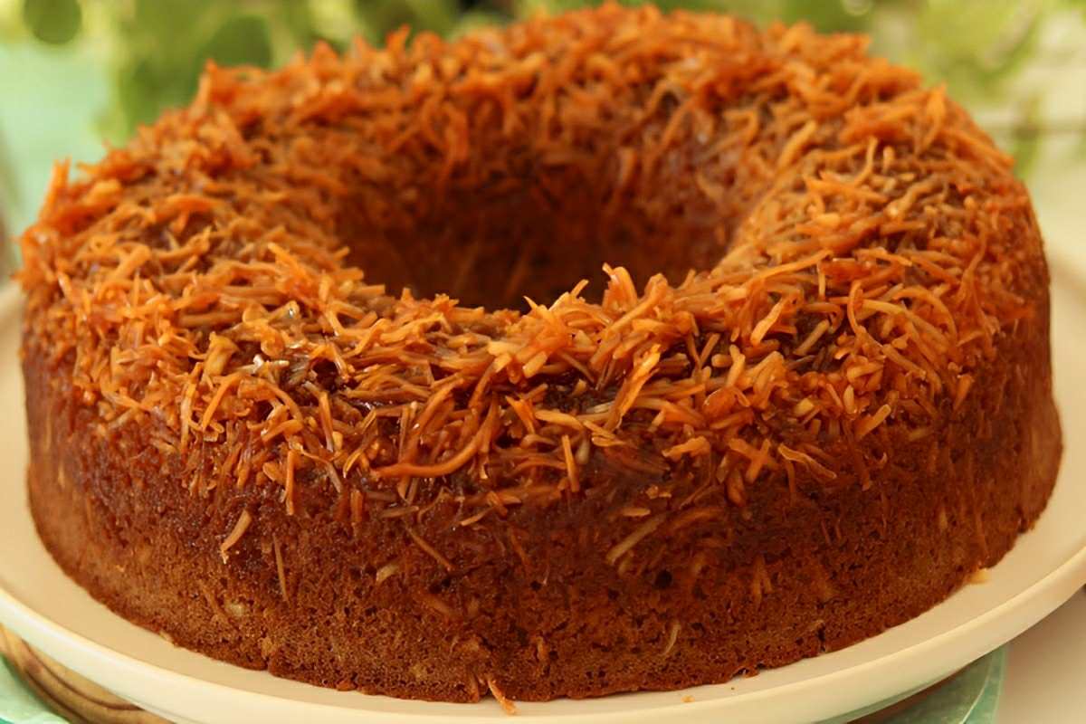 Bolo de coco queimado fofinho delicioso e perfeito para servir no lanche ou café
