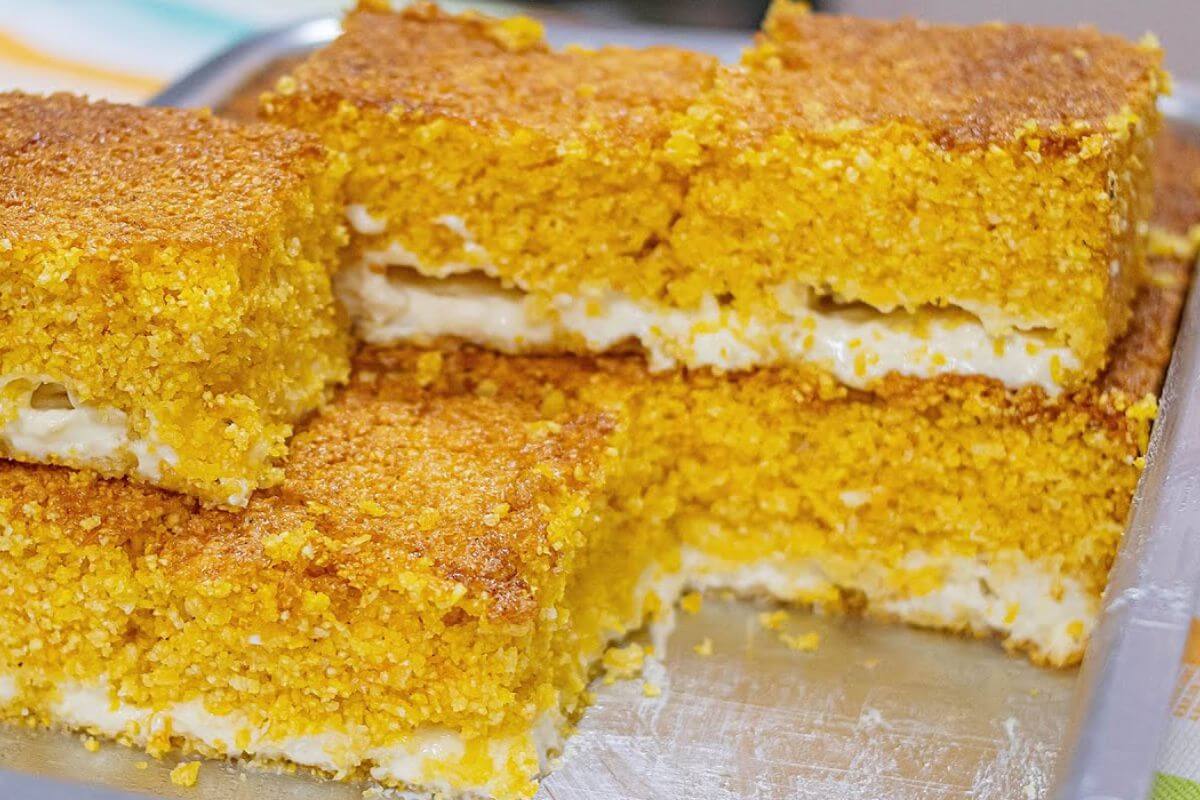 Bolo de flocão recheado com requeijão que fica simplesmente divino