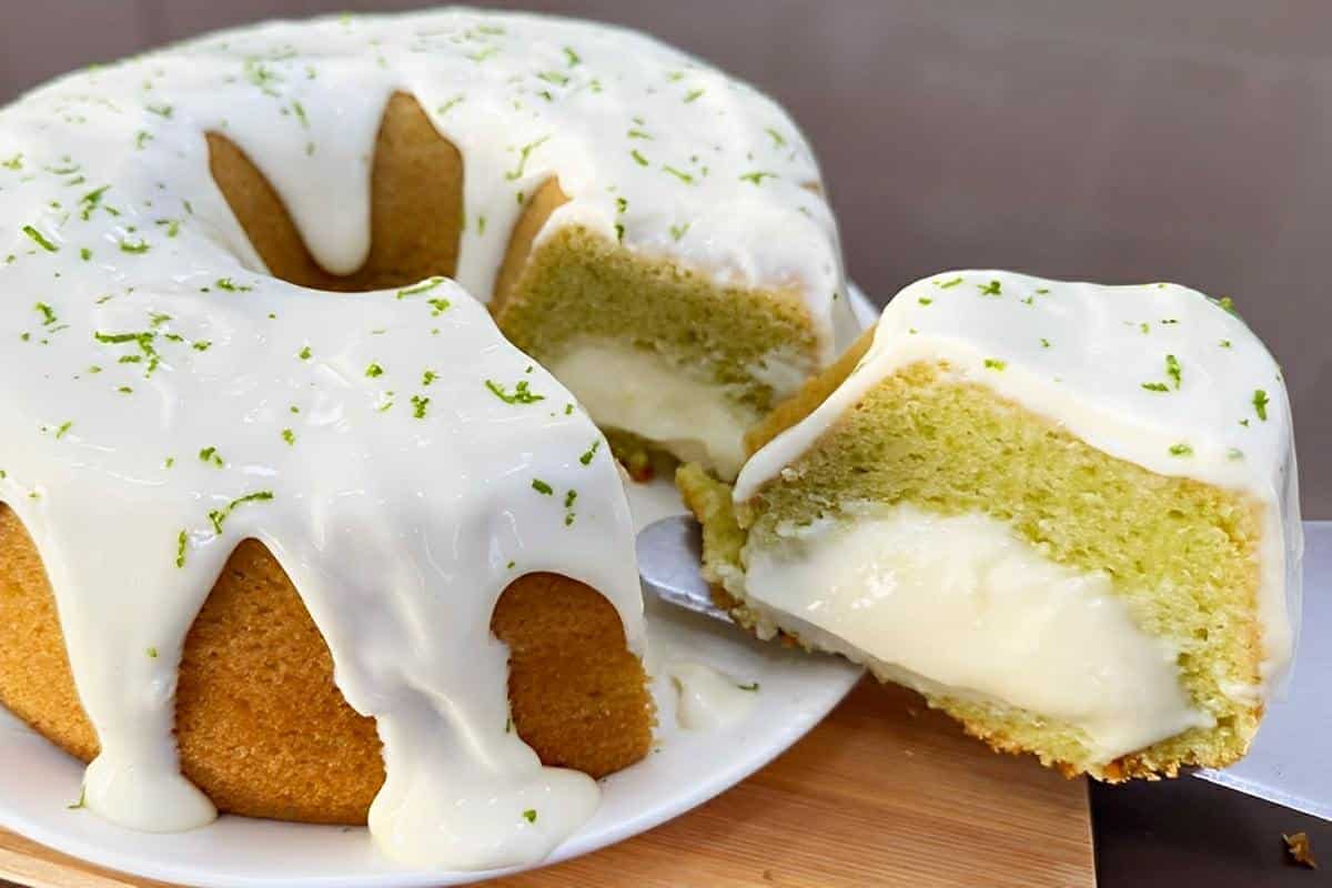 Bolo de limão com recheio de mousse de leite condensado cremoso uma delícia