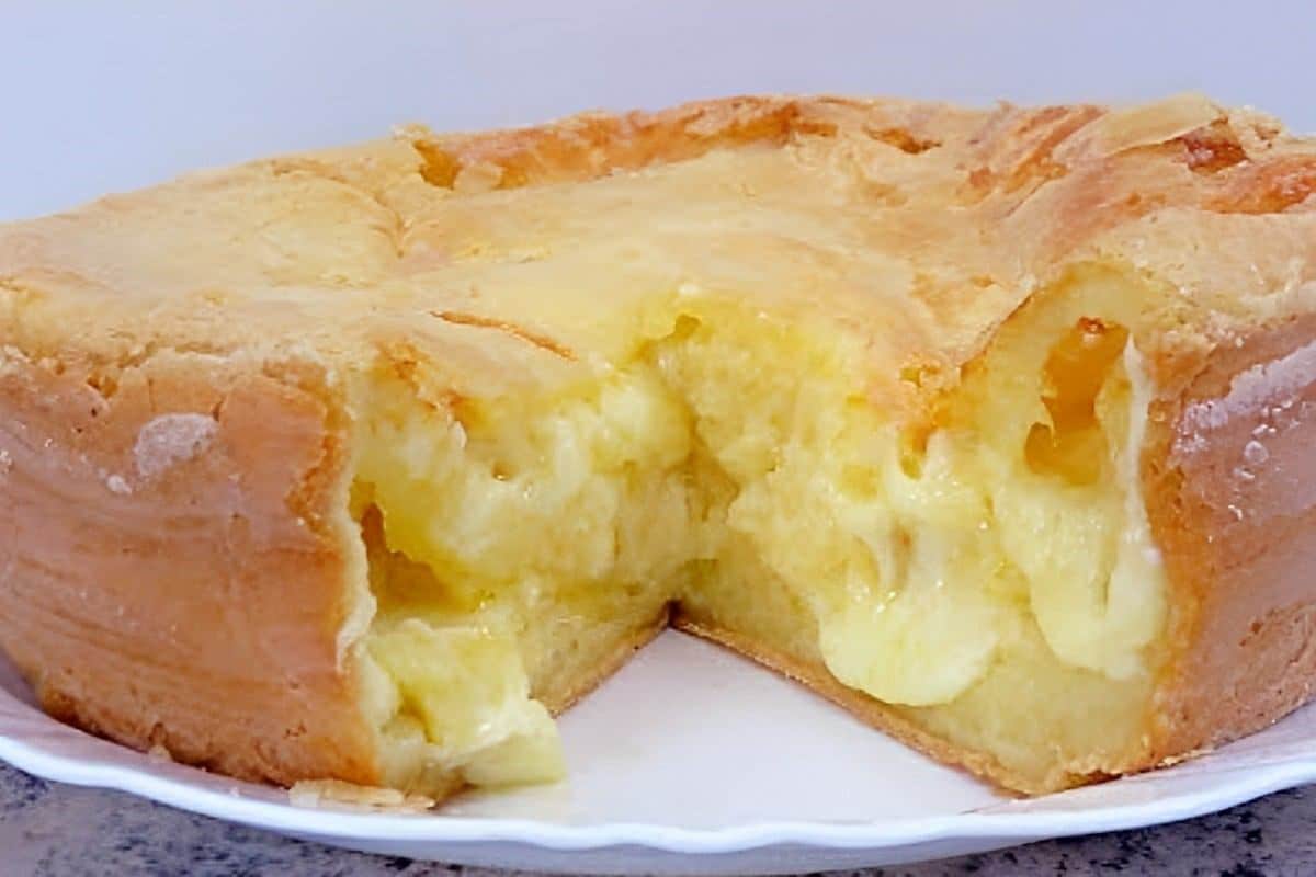 Bolo de polvilho que já sai recheado do forno perfeito para o lanche