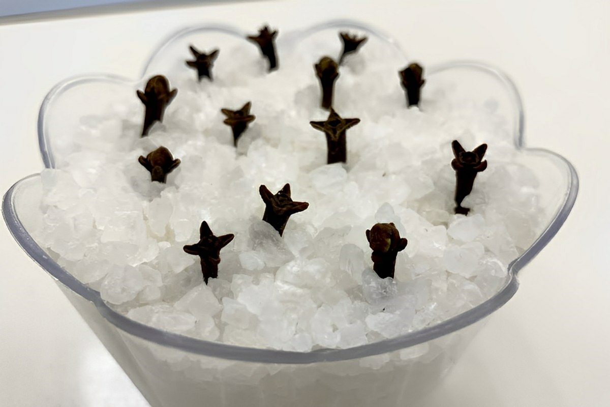 Para fazer essa dica para espantar formiga, precisaremos de apenas 2 produtos que podem ser encontrados em basicamente qualquer mercado e que talvez você até já tenha na sua casa. Estamos falando de sal grosso e cravo-da-índia. Só isso! Nessa dica para espantar formiga, usamos o poder do aroma do cravo-da-índia, que é um repelente natural de insetos e que as formigas detestam. O sal grosso, além de servir de suporte estrutural para os floretes de cravo-da-índia, também ajudam a reter um pouco de umidade que potencializa o espalhamento do aroma do cravo.