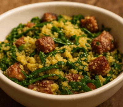 Ela sempre fez questão de usar ingredientes simples e econômicos, isso nunca diminuiu o sabor de suas receitas, hoje faço essa receita de Farofa de Couve simples e rápida sempre, todo mundo é apaixonado por ela. Fiz alguns ajustes para deixar mais saborosa mas sem perder a originalidade, é receita padrão da roça, faça e se prepare para receber uma chuva de elogios.
