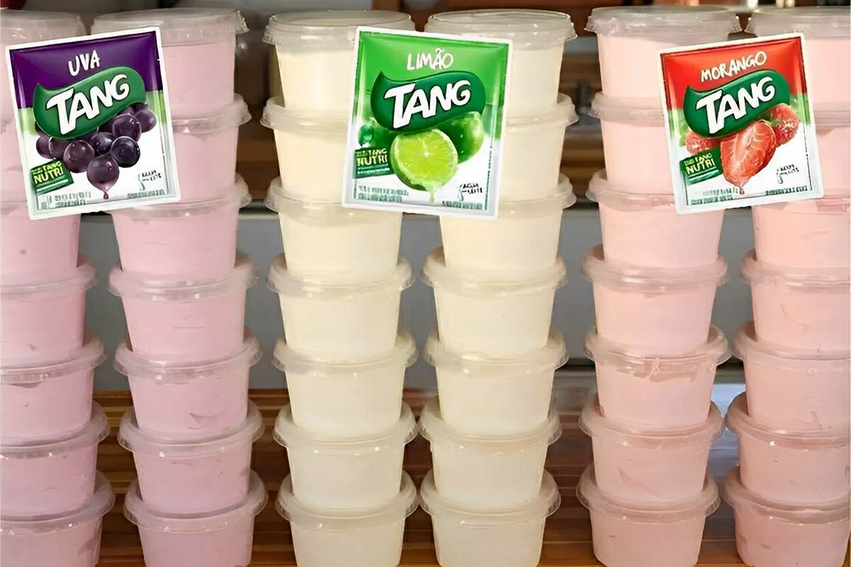 Fiz 14 potinhos de sorvete caseiro usando apenas 1 pacotinho de suco em pó