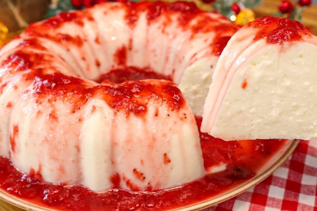 Para fazer manjar de natal vamos utilizar coco ralado, creme de leite, leite condensado, leite de coco, leite e maisena. Iremos misturar numa panela os ingredientes do manjar de natal, seguindo a sequência de adição e preparo, vamos levar ao fogo médio, até obter uma creme homogêneo. Em seguida iremos despejar essa mistura numa forma de furo central levemente untada com óleo, e levar o manjar de um dia para o outro. Depois disso, vamos retirar da geladeira, desenforma numa travessa, cobrir o manjar de natal, com a calda de morango preparada conforme as orientações, e saborear cada fatia cremosa desse manjar de natal dos deuses!