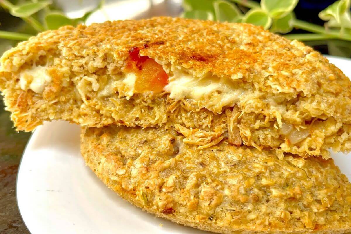 Não precisa colocar trigo nem leite para fazer esse pãozinho de aveia recheado e delicioso