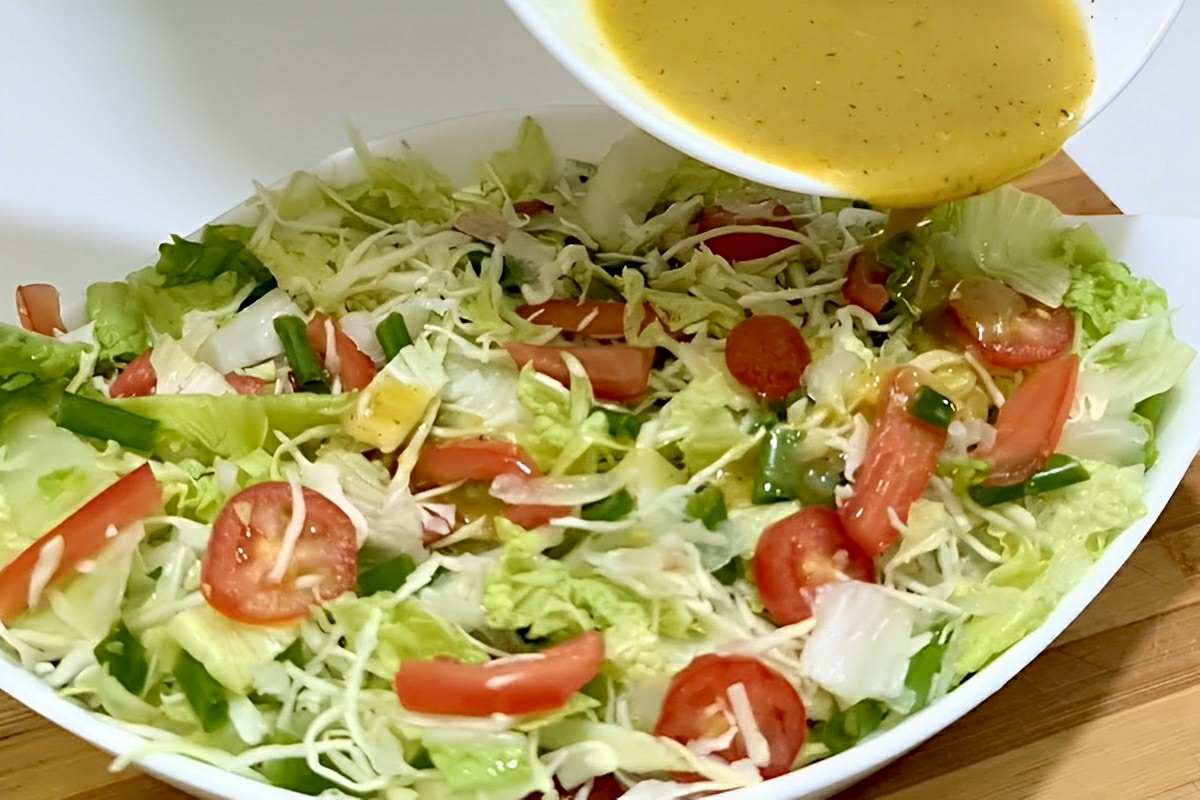 Dica: Não adicione o molho na salada com antecedência, apenas no momento de servir e também não misture, apenas regue a salada com o molho, para garantir um ótimo resultado!