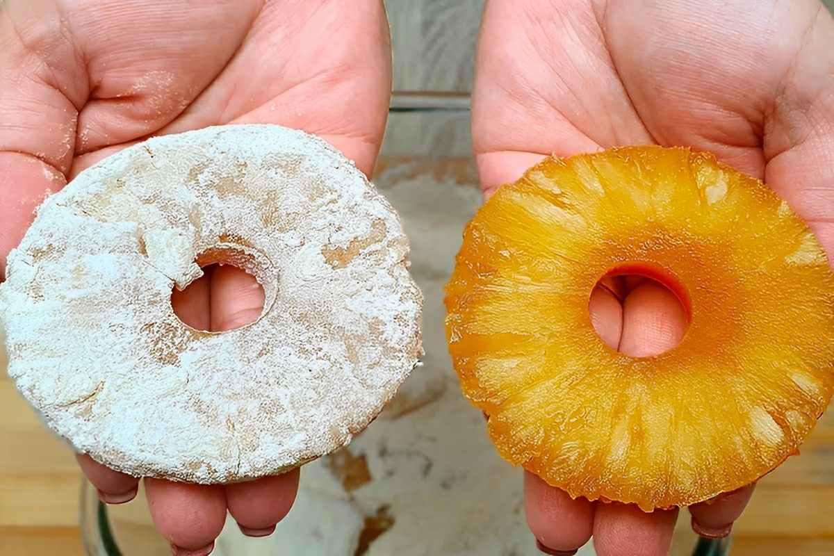 Passei abacaxi na farinha de trigo misturei na massa do bolo e o resultado foi um bolo de abacaxi incrível