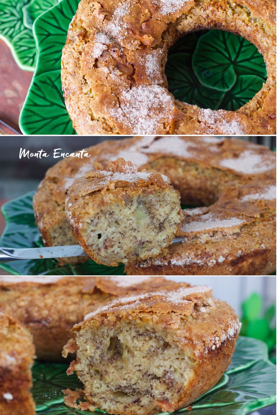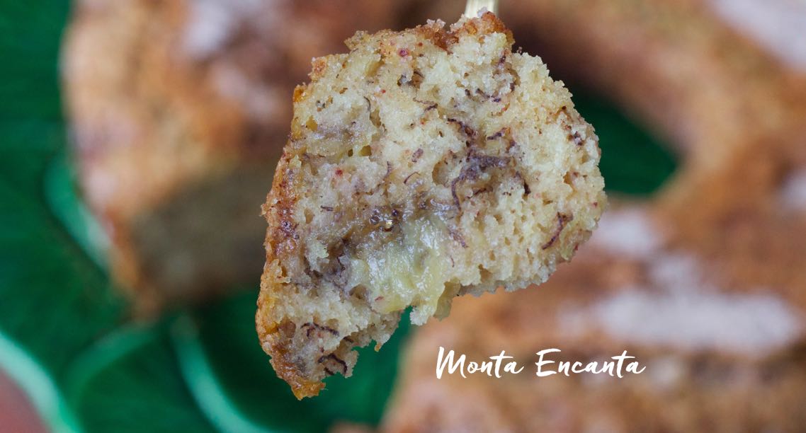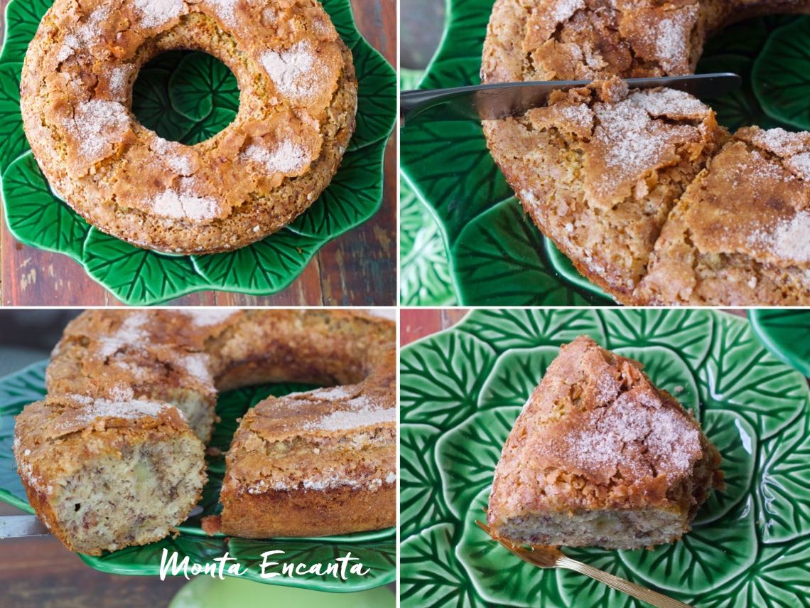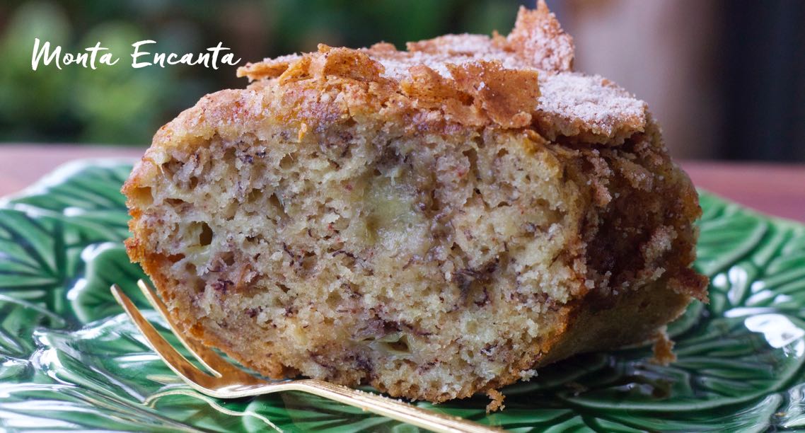 Bolo de Banana com casquinha crocante de canela e açúcar, divino!