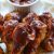 o molho barbecue por cima com o auxilio de uma colher, volte as coxinhas ao forno por