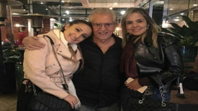 Veja abaixo uma foto de Carlos Alberto e sua namorada. No Instagram, ele fez piada sobre o assunto e questionou qual das duas moças era a sua neta.