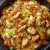2. Salteie o repolho: Na mesma frigideira, aqueça o restante do azeite e refogue a cebola até ficar translúcida. Adicione o alho e mexa até liberar aroma. Acrescente o repolho e a cenoura ralada (se usar), salteando em fogo alto para que os vegetais mantenham a crocância.