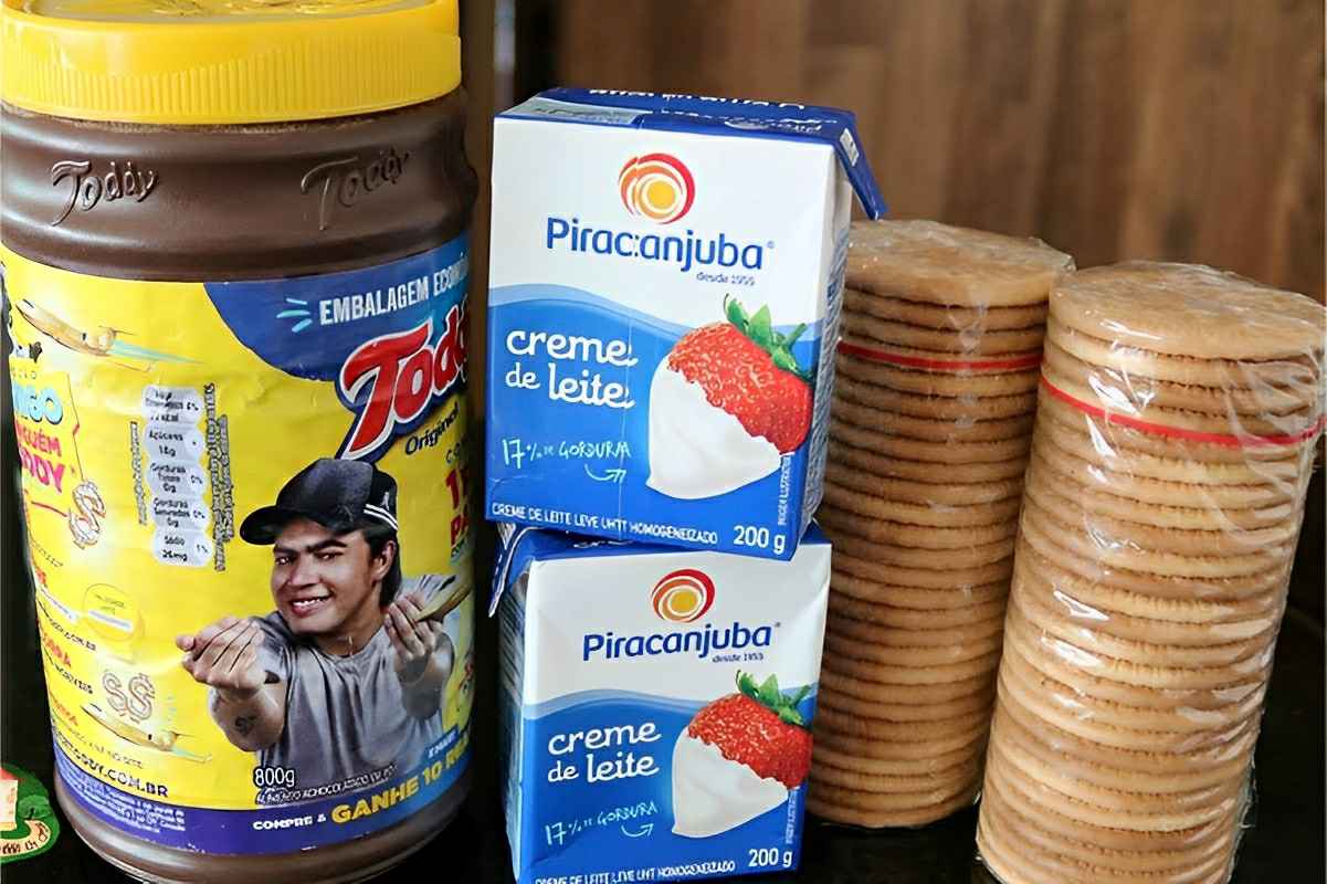 Em um recipiente coloque o creme de leite, achocolatado, mexa bem. Em seguida forre o fundo da travessa com o creme, e acomode as bolachas e vá alternado creme com as bolachas até acabar os ingredientes. Depois triture levemente umas bolachinhas e adicione por cima e polvilhe achocolatado. Em seguida coloque para gelar no freezer por 20 minutos. Após gelado pode servir e se deliciar com essa sobremesa. Confira o passo a passo e a lista de ingredientes usados.