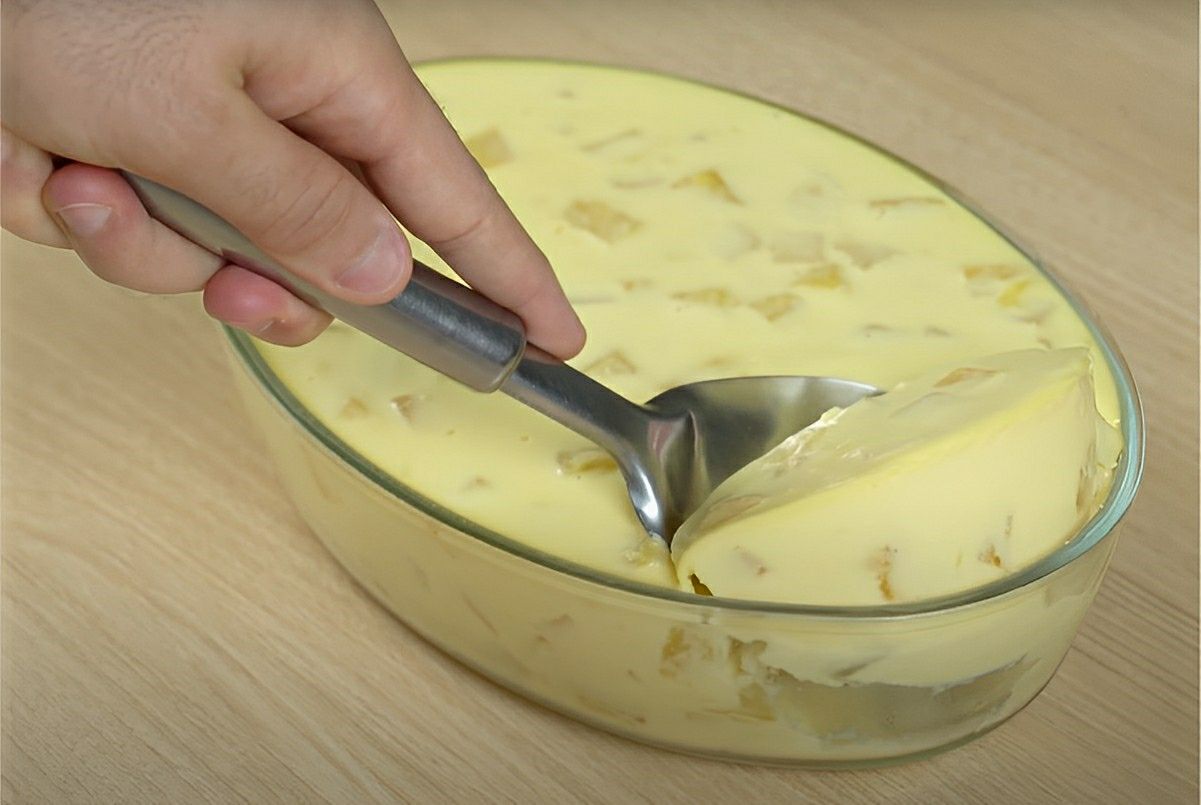 Sobremesa de abacaxi na travessa muito refrescante saborosa e fácil de fazer