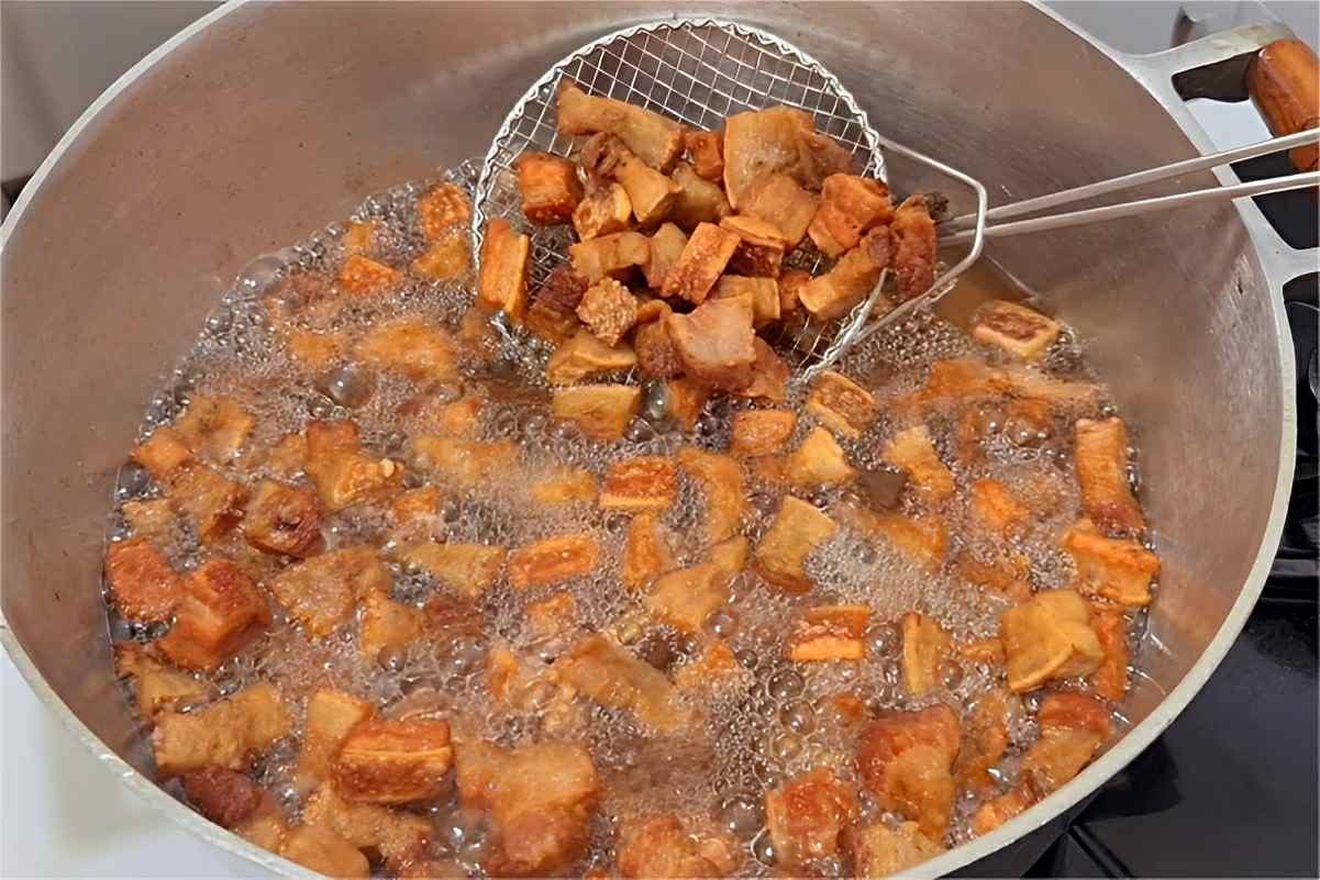 A banha que ficar na panela, após esfriar, guarde para utilizar no cozimento de suas refeições que ficarão ainda mais saborosas, além de ser uma opção mais saudável!