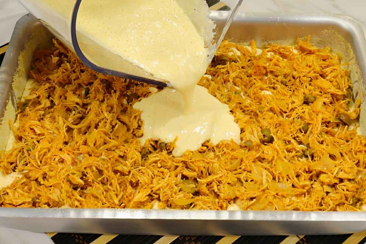 Para preparar a torta de frango, inicie fazendo o recheio: refogue cebola, alho e frango, e adicione os temperos. Reserve. No liquidificador, bata os ingredientes da massa, despeje metade em uma forma, coloque o recheio e cubra com o restante da massa. Asse até dourar. Essa receita simplificada mantém o sabor tradicional, garantindo uma torta de frango deliciosa.