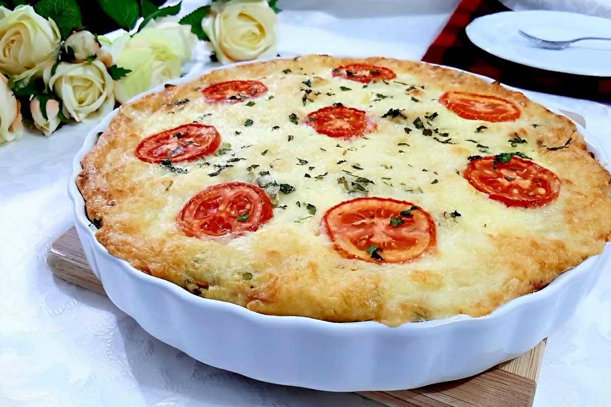 Torta salgada deliciosa recheada com presunto e requeijão cremoso